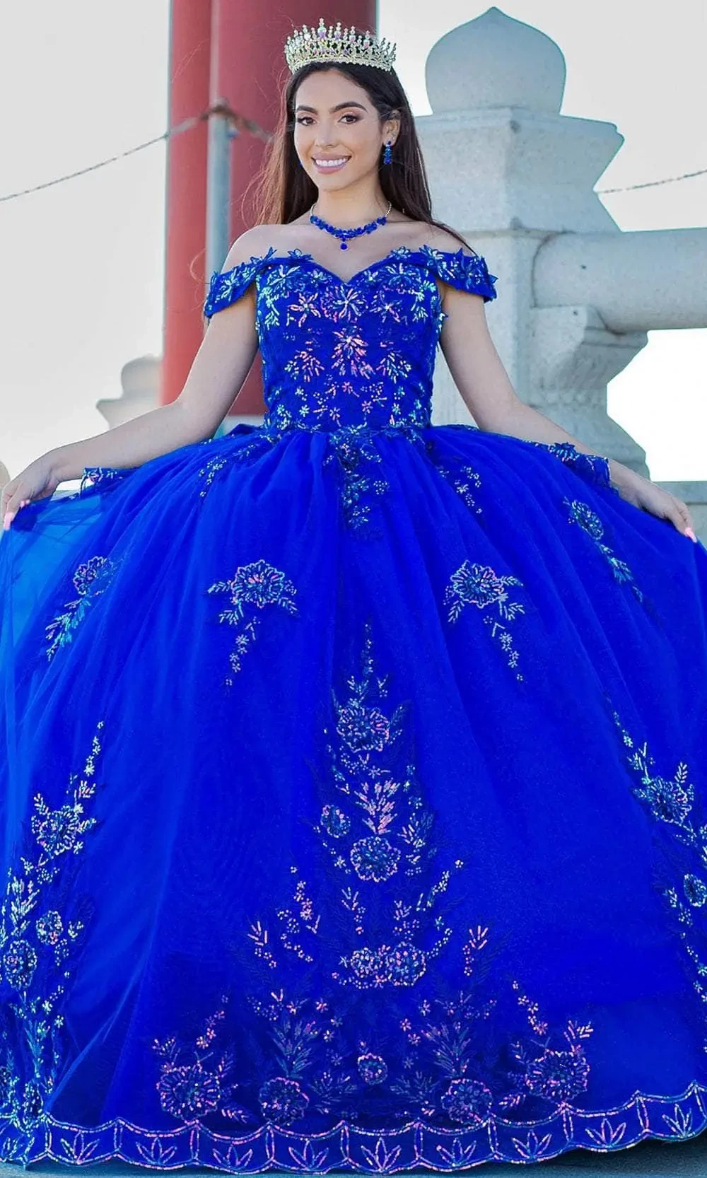 Their designs often feature glitter, 3D floral appliqués, off-shoulder necklines, corset bodices, and layered skirts — combining fantasy with wearable elegance.