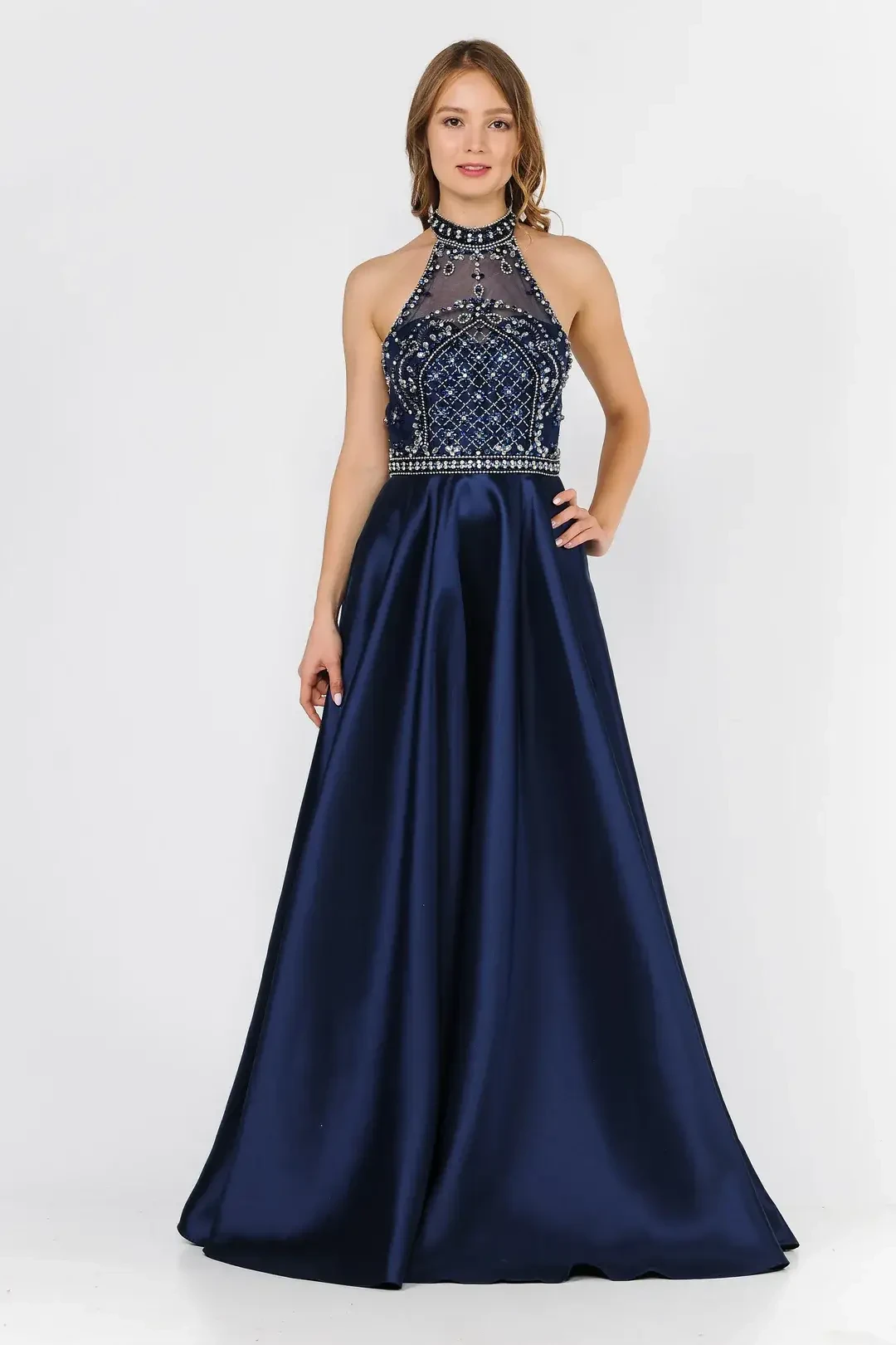 Long Prom Gown with Illusion Bodice & Beading — A balanced combination of sparkle and elegance, ideal for formal nights.